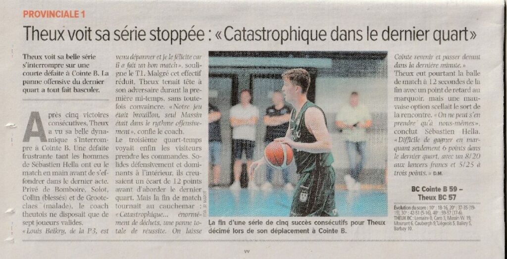 Theux voit sa série stoppée : « Catastrophique dans le dernier quart « 1 Pro Presse 27 octobre 2025 L’Avenir 27.10