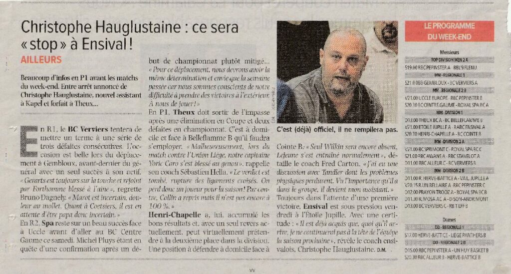 • Christophe Hauglustaine : ce sera « stop » à Ensival !