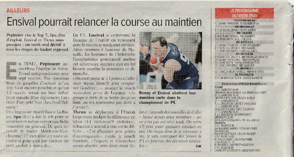 Pepinster vise le Top 5, Spa rêve d’exploit, Ensival et Theux sous pression : un week-end décisif à tous les étages du basket régional.