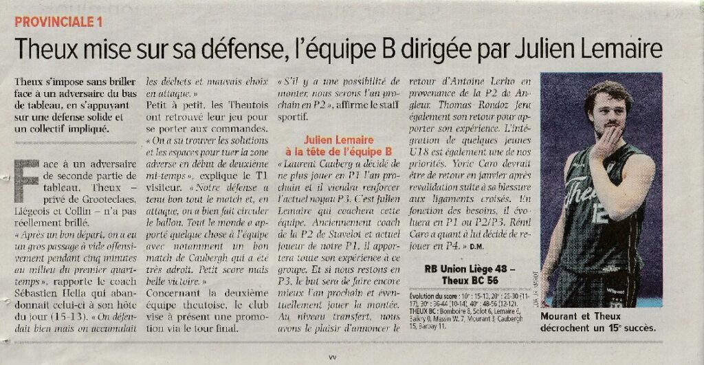Theux mise sur sa défense, l’équipe B dirigée par Julien Lemaire 1 Pro Presse 30 mars 2026 L’Avenir 30.03